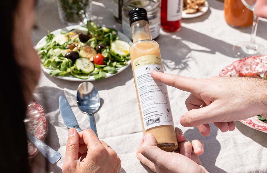 - Dorso/lateral: Lista de ingredientes, tabla nutricional, alérgenos, fecha vencimiento, información fabricante